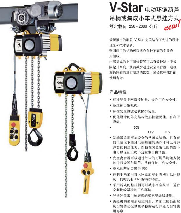 環(huán)鏈電動葫蘆結(jié)構(gòu)特點:電動葫蘆產(chǎn)品結(jié)構(gòu):機體選用高強度拉伸殼體或壓鑄鋁殼體,采用薄壁擠壓成型工藝精密制造,體積小、重量輕、強度高。標準的環(huán)鏈電動葫蘆具備獨立的變速箱系統(tǒng),密封變速箱內(nèi)的二級同軸傳動齒輪機構(gòu),采用長壽命的油浴潤滑系統(tǒng)。電動葫蘆粉末冶金離合器作超載保護裝置,制動采用盤式直流電磁場制動,制動力矩大、平穩(wěn)、迅速、噪音小 。